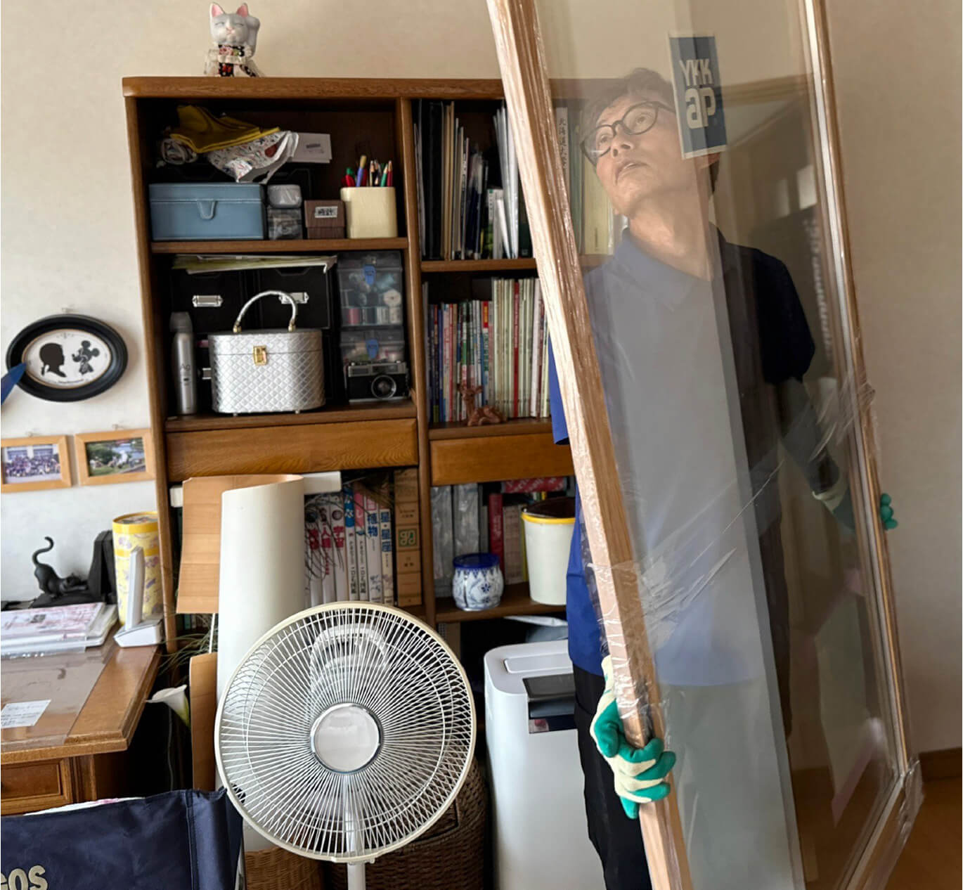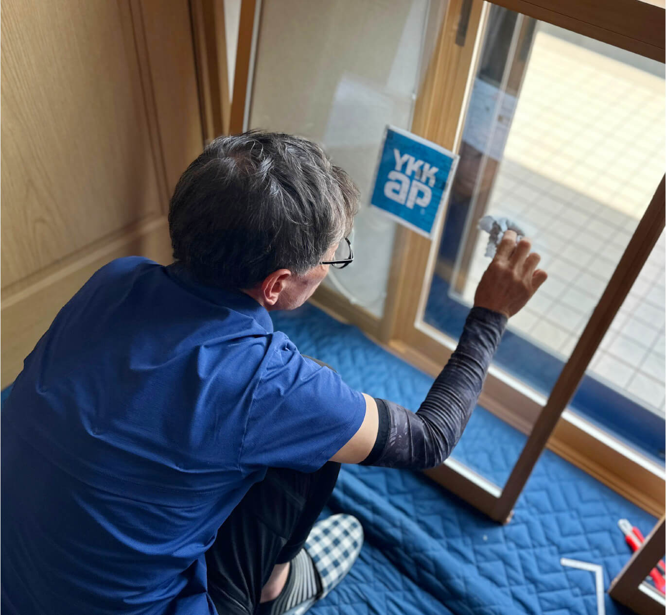 サッシと呼ばれる窓枠の取り付けを行う仕事です。